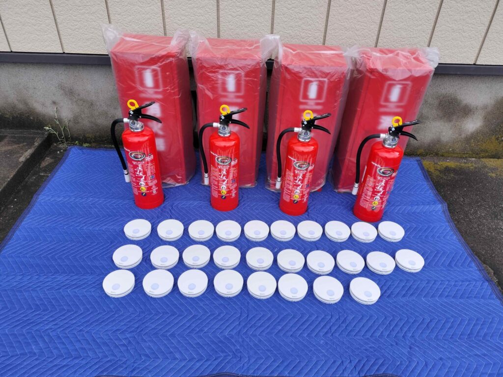 小規模アパートにも消防設備の設置が義務付けられております。例えば消火器や自動火災報知設備などです。今回弊社では自動火災報知設備の不要な規模のアパートへ消防設備を新設して参りました。消火器と住宅用火災警報器(通称:住警器)です。寝ているときなどにも火災に気づき逃げるための大切な設備となっております。アイワ防災ではそういった設備も安価にてご案内させて頂いております。