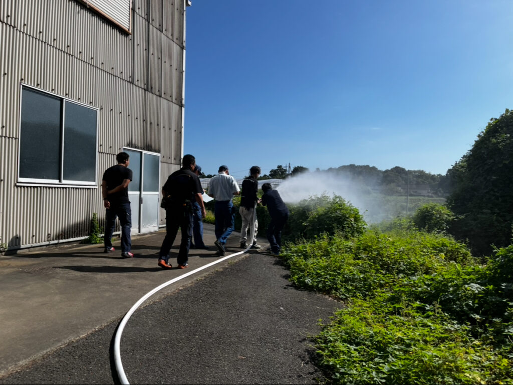 今回は屋内消火栓の検査もあり、規定の水圧以上の放水ができるかの検査も行いました。