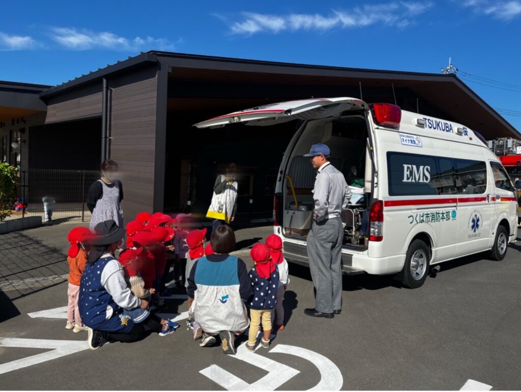 訓練終了後は、園児達が楽しみにしていた、救急車と消防車の見学です!